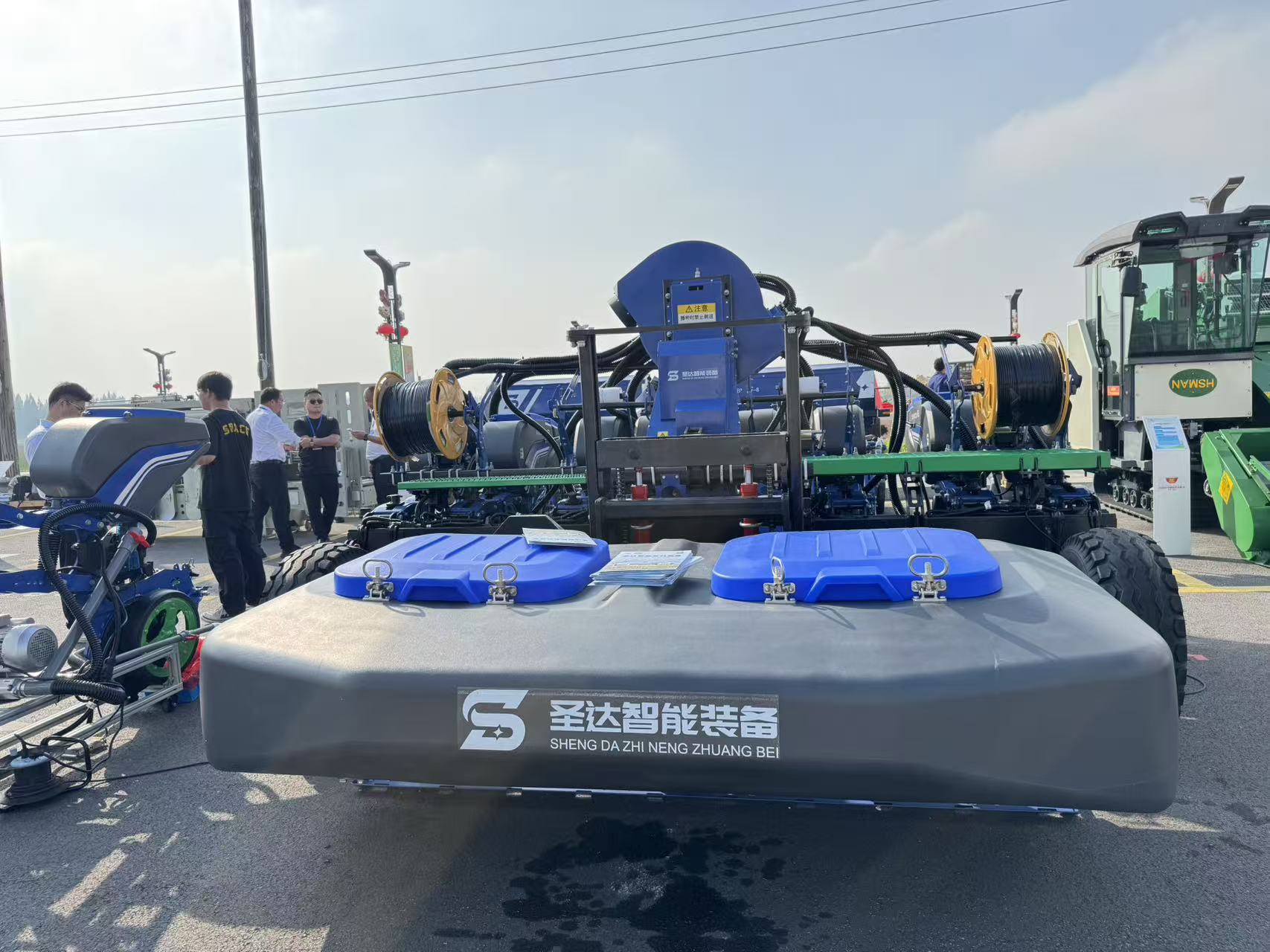 智能农机、聪慧农业播种机是稼穑功课中的环节农机具。丰收节现场展现的圣达智能配备以其大幅宽的酷炫外表吸引了农人伴侣的关心。排种器、风机、全套电控等焦点部件均为自从研发。”安徽圣达智能农机配备无限公司手艺担任人白飞引见,这款气吹播种机采用气吸加气吹体例播种,兼顾了气吸和气吹的双沉劣势,播种更平均。搭配的是前置肥箱,能够使不异马力拖沓机拉更大幅宽的播种机,增大功课效率30%以上。